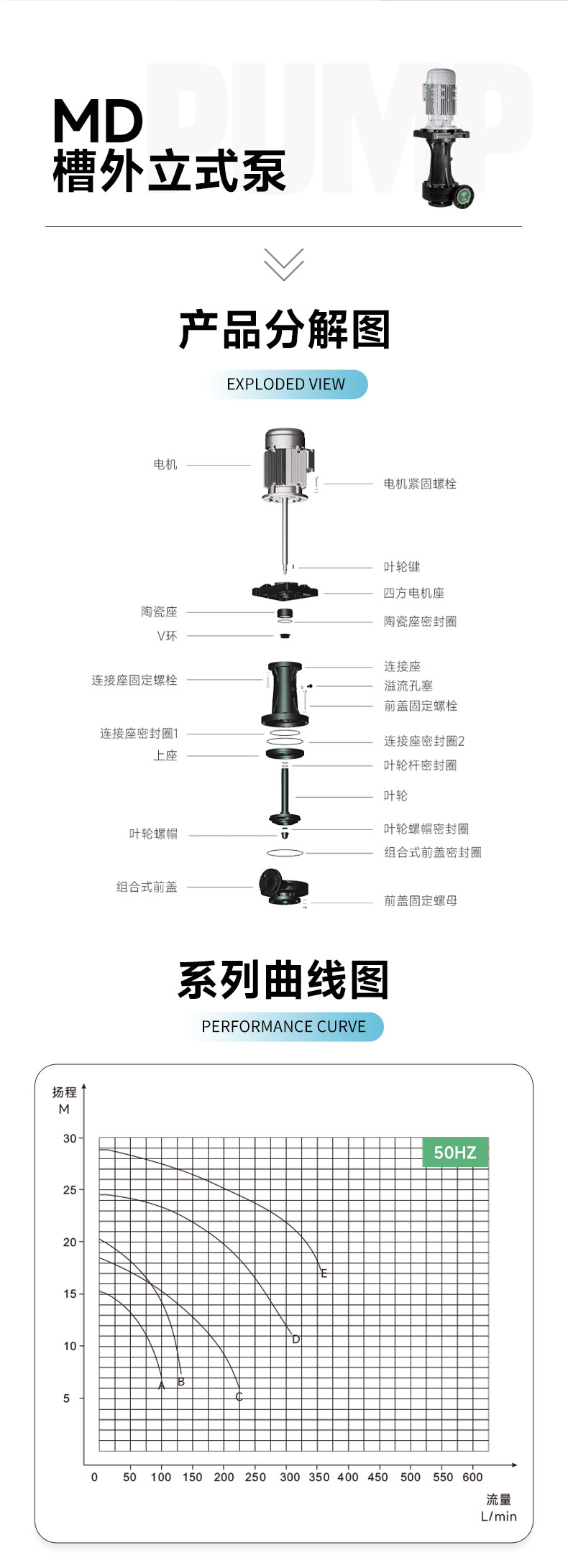 美寶耐酸堿槽外立式泵廠家,多種口徑、功率齊全,非標(biāo)定制。美寶槽外立式泵MD系列,揚(yáng)程可達(dá)到29米,流量1730L/min。